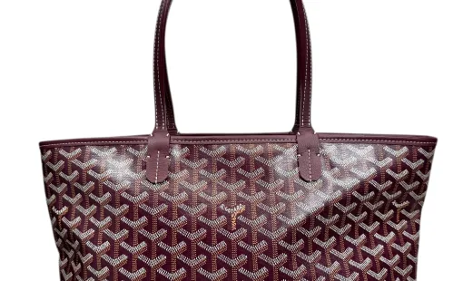 Sac « Artois » PM en goyardine et cuir bordeaux, fermeture éclair, double anse.