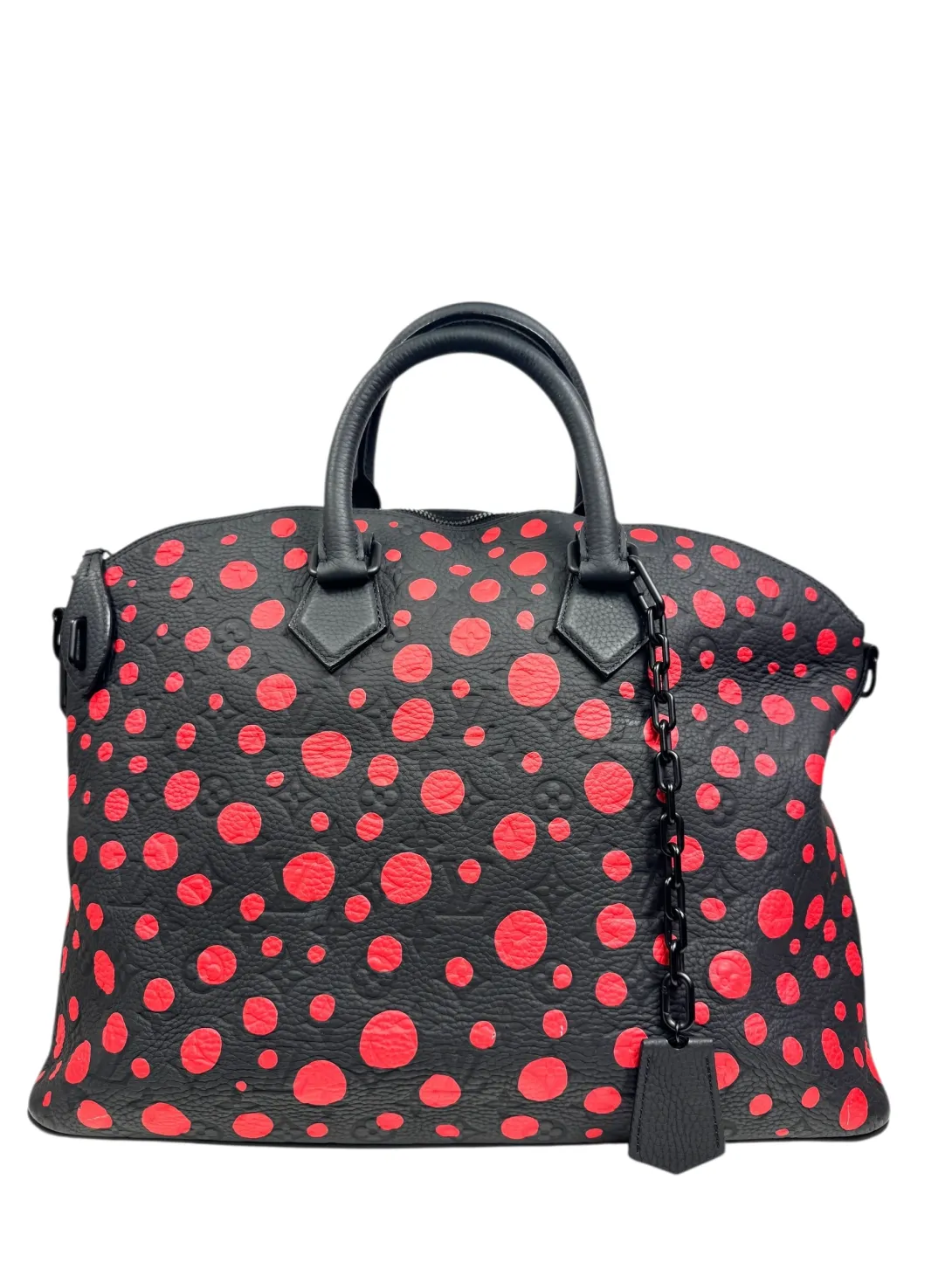 Sac « Lock It » en veau Monogram noir imprimé infinity dots rouge, fermeture éclair, double poignée.